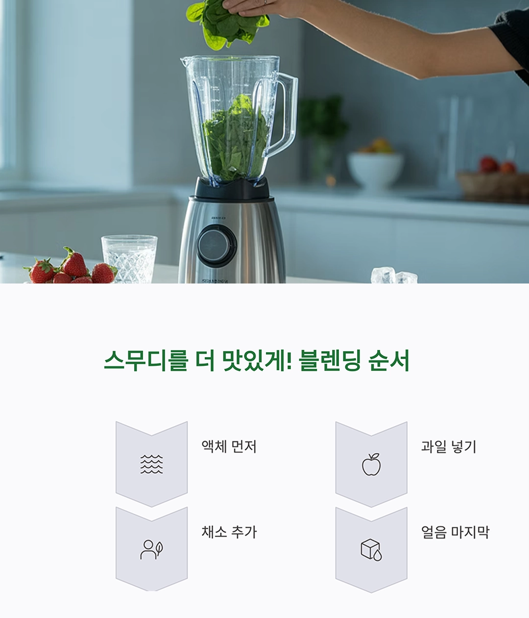 재료를 넣는 순서도 스무디 맛에 영향을 미칩니다.