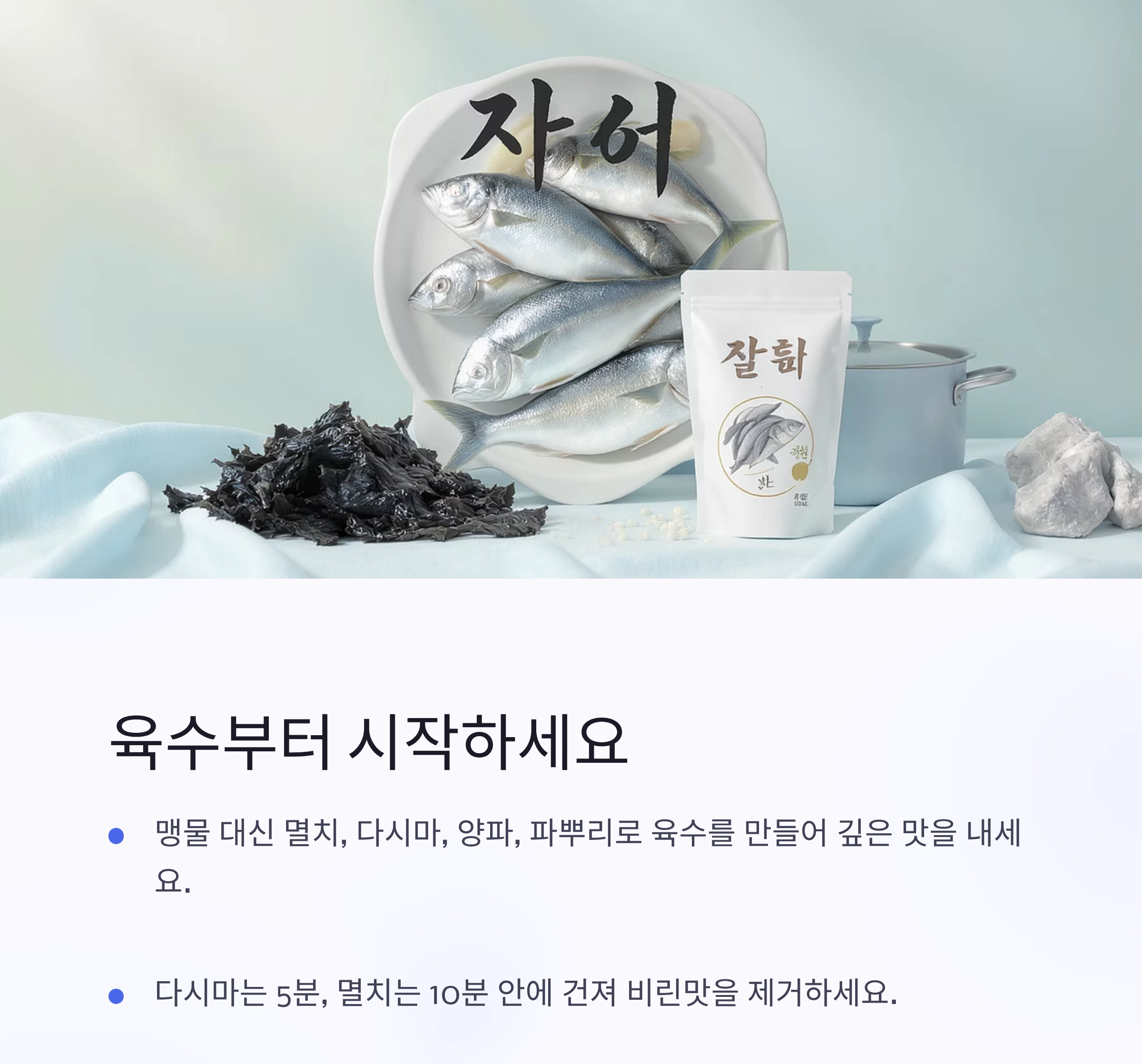 센 불에서 끓이다가 다시마는 5분 후 건지고, 멸치는 10분 안에 건져내야 비린 맛이 남지 않습니다. 한 번에 많은 양을 끓여 냉동해 두면 다양한 요리에 활용할 수 있어 편리합니다.